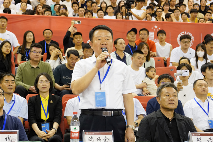 校党委书记沈兴全宣布第26届中国大学生篮球一级联赛男子32强赛开赛。